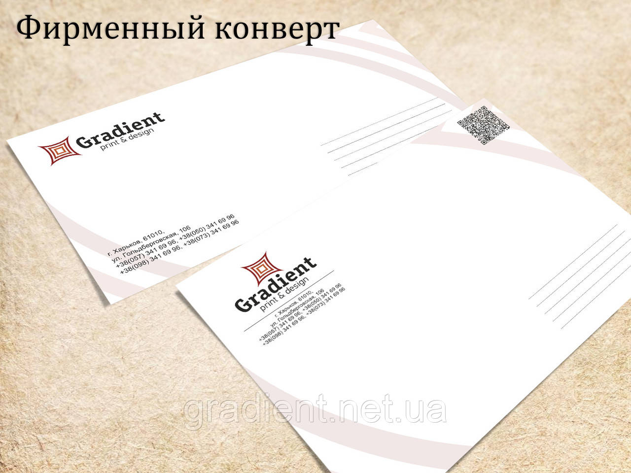 Використання стилізованих конвертів у діловому листування позитивно відбивається на сприйнятті інформації. Фірмовий конверт вигідно виділяє Вашу корекцію серед інших листів Вашого контрагенту.
